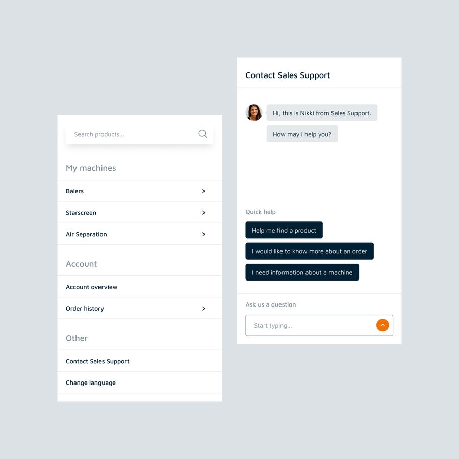 We have ensured easy navigation through complex product layers, partly through interactive 3D animations of customer-specific machines. These show a personalized product range based on customer-specific machines and order history.