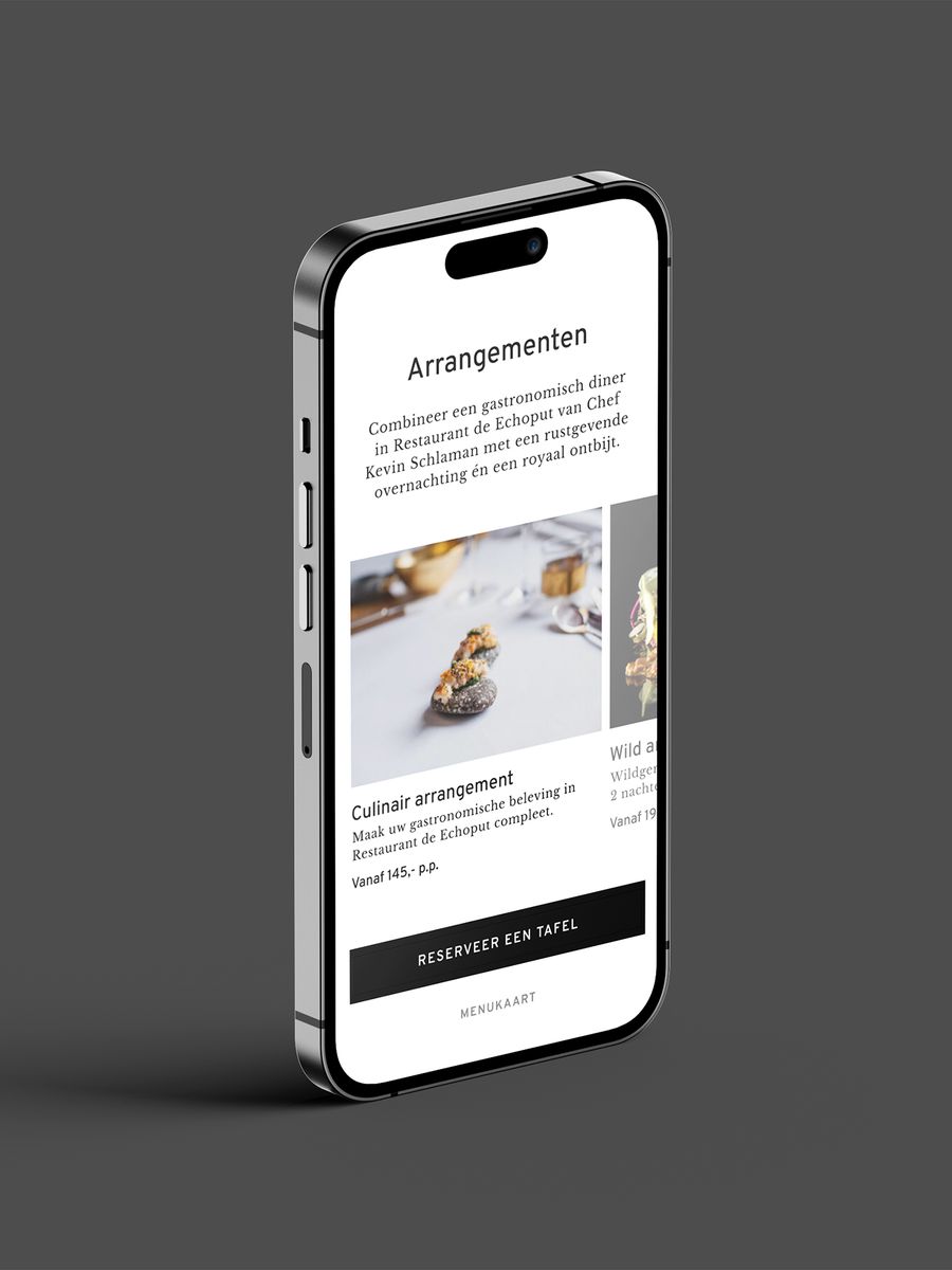 Almost 80% of users visit Hotel de Echoput's website from a mobile device. From the first moment we focused on mobile and tablet, with special attention to super fast loading times.