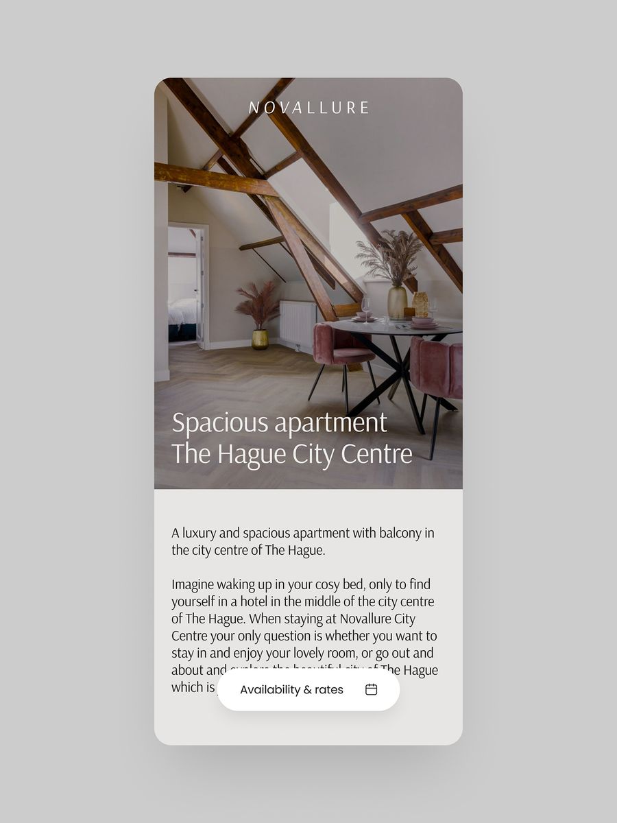 Novallure's target group is young professionals. To service this ‘Instagram-generation’, we have digitized as much as possible. Booking, check-in and check-out, reception; everything can be easily arranged online. Ordering breakfast or dinner, booking a bike ride and finding important information about your room. Everything is centralized on the website, based on your location and with the help of QR codes.